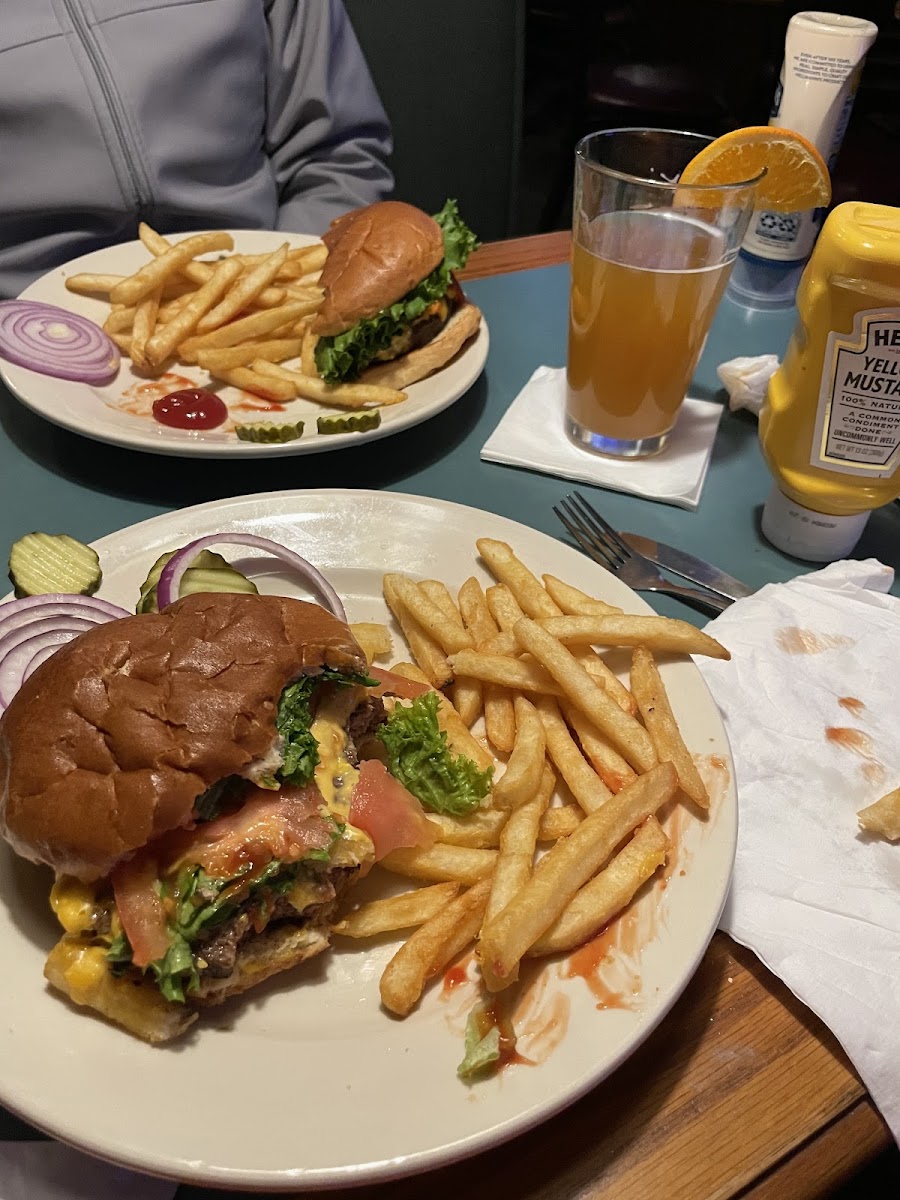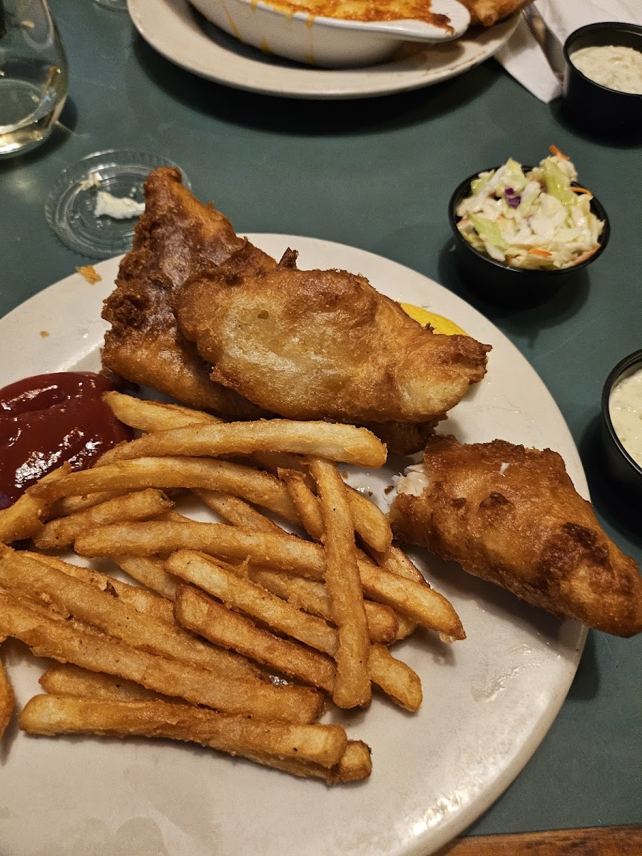 Love it here!! Food, drinks and service are great! My husband loves the gatsby burger and onion rings, my favorite is the chicken cob salad that I order off menu since they no longer have it on the menu (please add it back). Fish and chips are also good!!