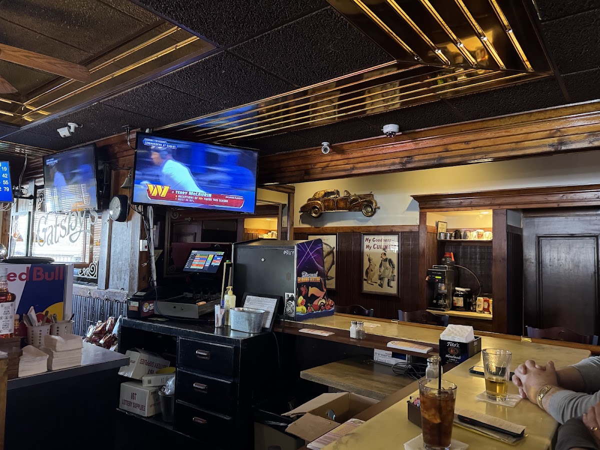 Can’t beat the atmosphere. Real locals feel! Everyone was friendly and helpful to us out of towner’s looking for some good comfort food on the road. I had the smoked brisket hoagie with seasoned fries special, and was impresses by the tenderness. Homemade sauce was sweet and tangy. Fries were nice a crispy. I added a picture of a glass of wine poured at the bar so they’re not stingy there either. Give them a try! I’d be a regular for sure.
