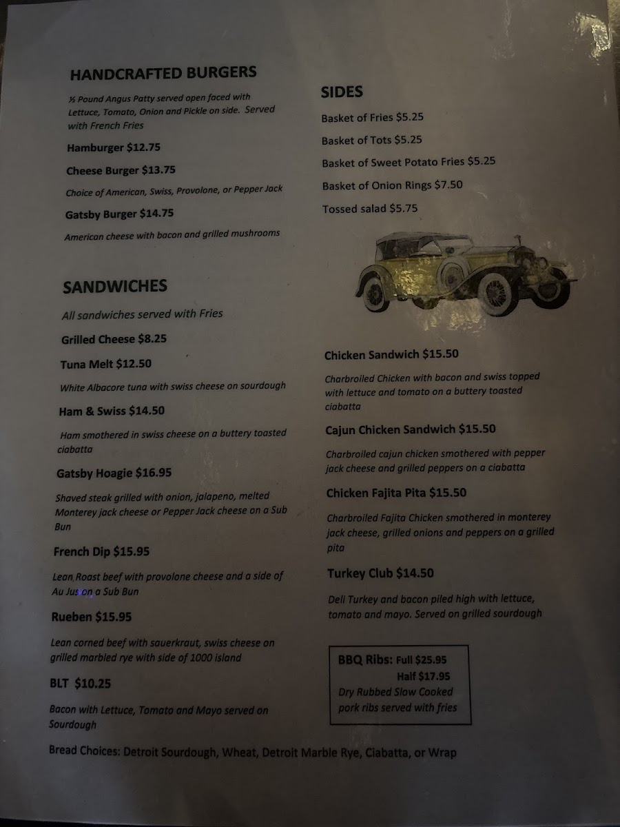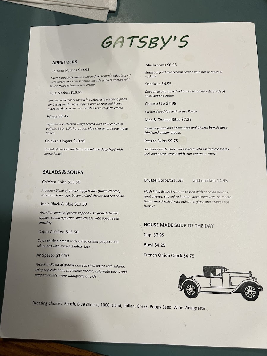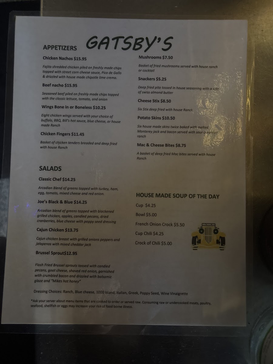 Gatsby's Menu
